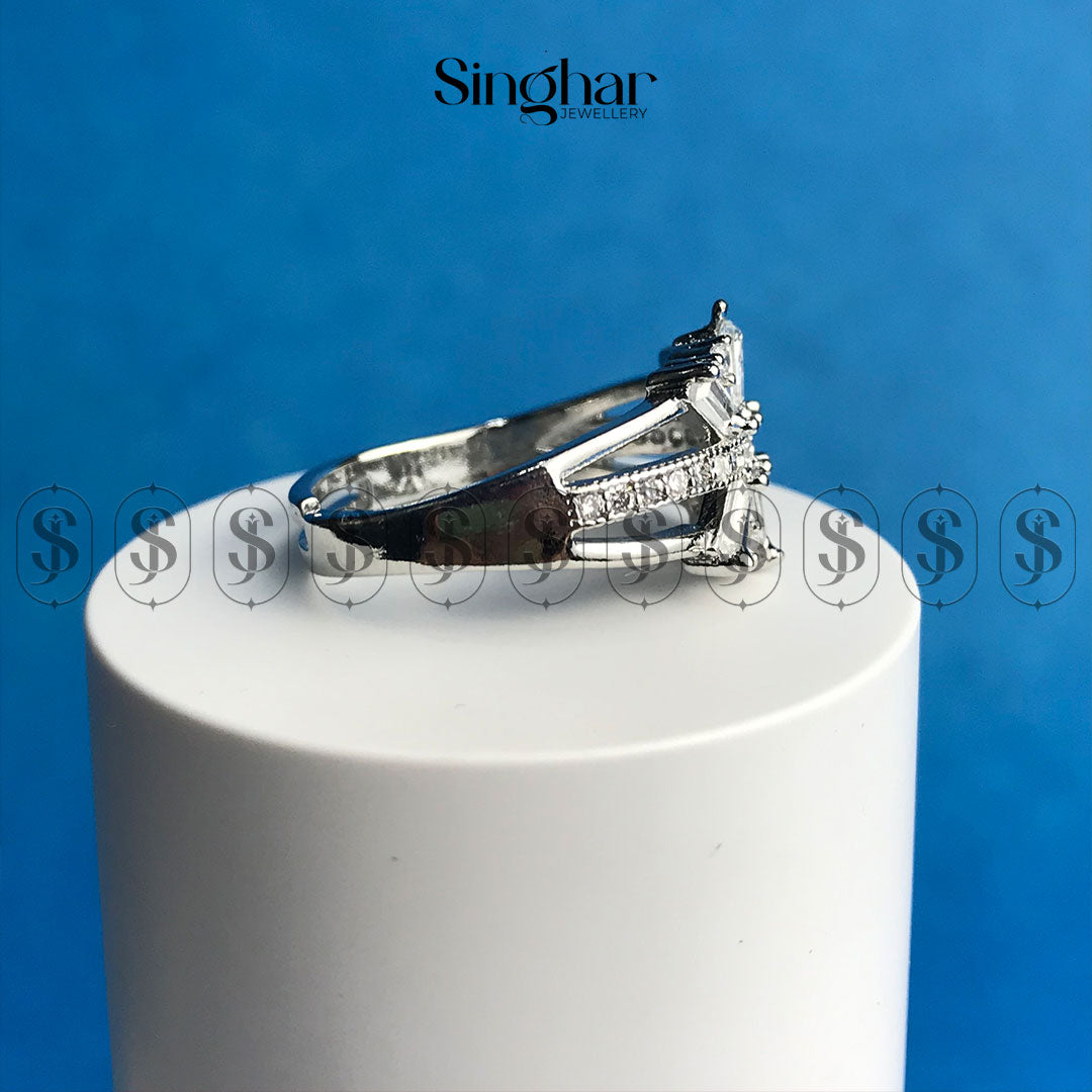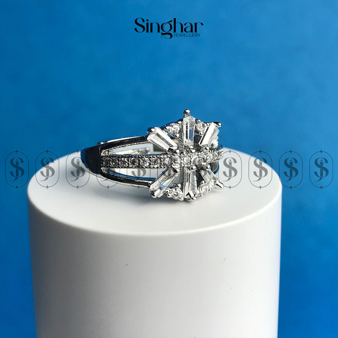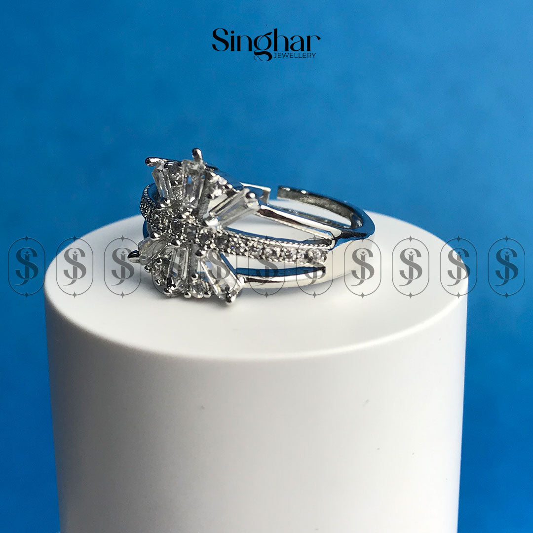 Designed to resemble a royal crown, this ring dazzles with perfectly arranged crystals and intricate gold detailing. A regal accessory for special moments.