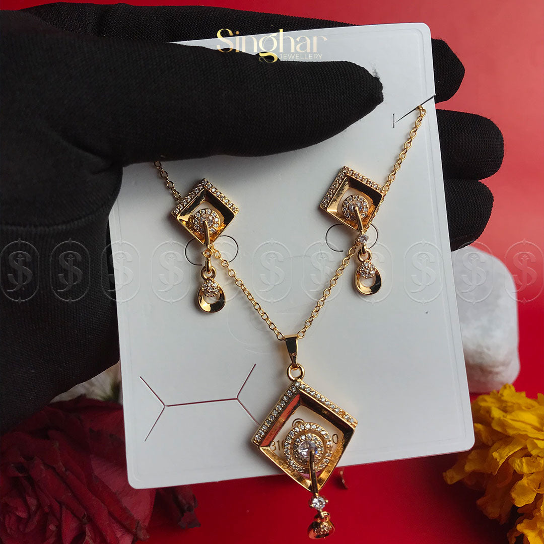 The Nova Harmony Set is an elegant and contemporary jewelry collection designed to captivate with its radiant golden hue and striking geometric balance. This set features a beautiful necklace with a combination of square and circular elements, symbolizing harmony and sophistication. The matching earrings seamlessly complement the necklace, creating a unified and stylish look. The design’s timeless appeal effortlessly blends modern elegance with classic charm, making it perfect for any occasion.