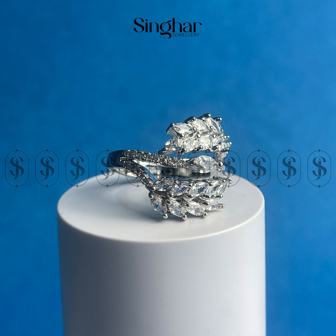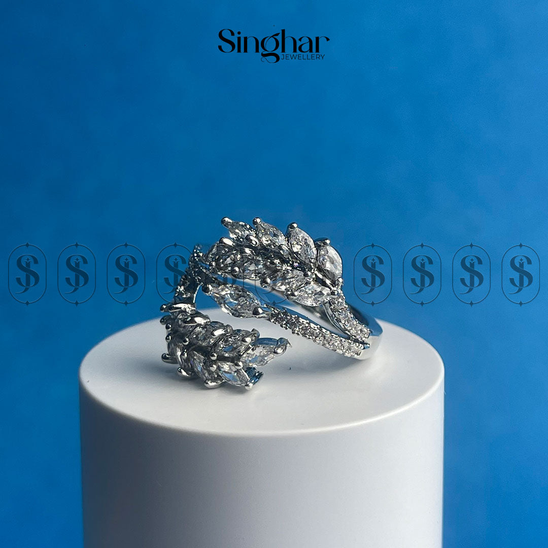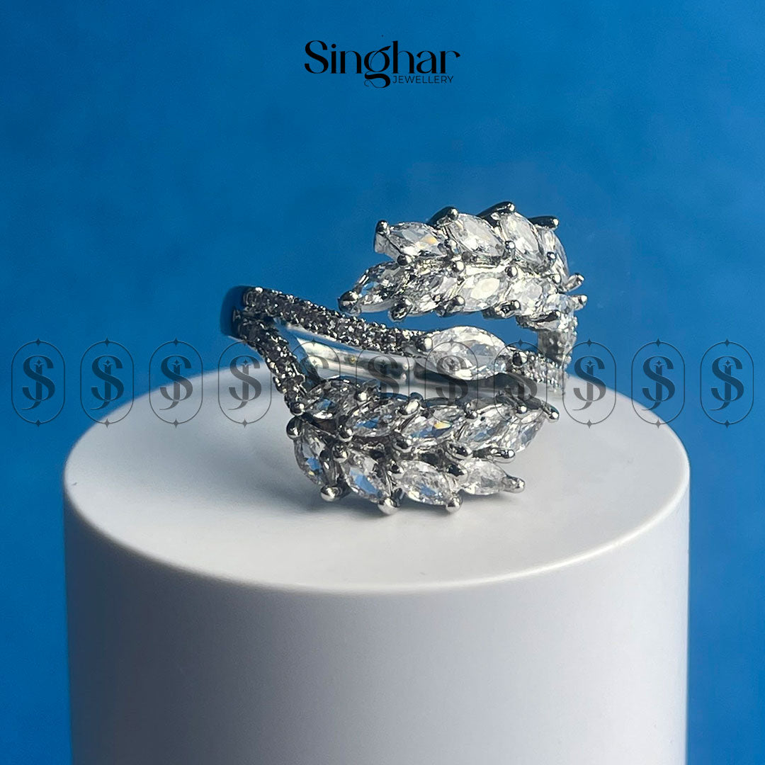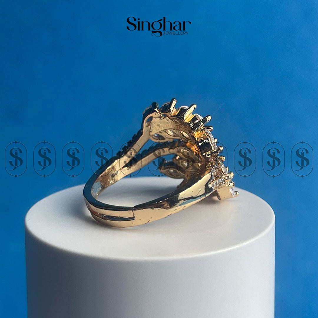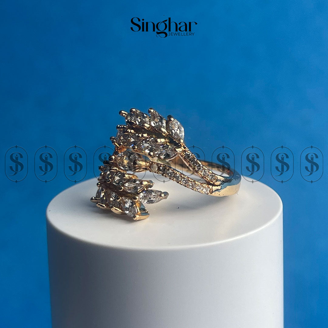 “The Vine” is a captivating ring that evokes the beauty of nature. Delicate branches, adorned with sparkling cubic zirconia stones, intertwine to create a graceful and elegant design. The golden finish adds a touch of warmth, making this piece perfect for adding a touch of nature-inspired elegance to any outfit.